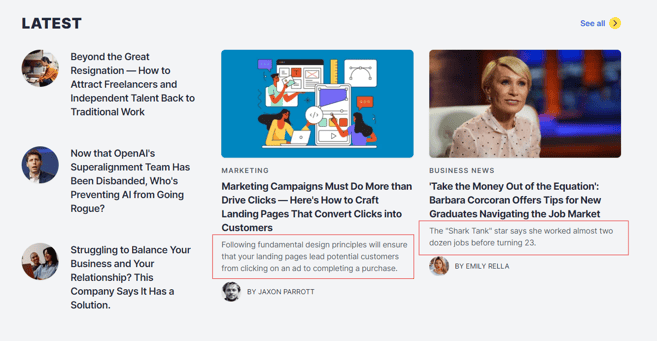 - Engagement: A compelling excerpt can capture the reader's interest, encouraging them to read the full article.